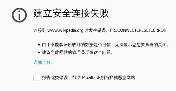The above curl test is connecting to www.kernel.org (IP 147.75.46.191), but attempting to do a TLS handshake using the SNI of www.wikipedia.org. As we can see from the output above, as soon as the TLS handshake, Client hello is sent, the connection is aborted.