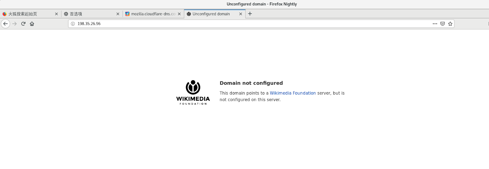 To check whether the blocking of Wikipedia domains could be circumvented by merely encrypting DNS traffic, we attempted to enable DNS over HTTPS in Firefox.