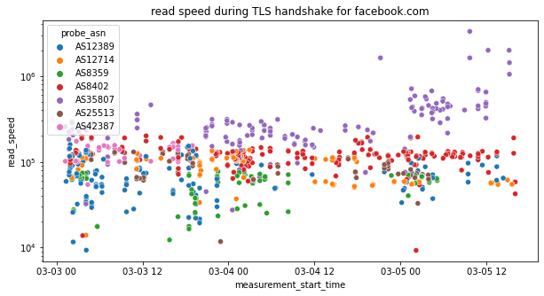 The above graph (based on the read_speed metric during the TLS handshake for facebook.com) shows that access to facebook.com does not appear to have been throttled.