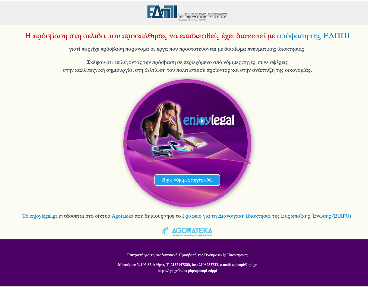 Following the recent decision of the Council of the European Union to suspend the broadcasting activities of Sputnik and Russia Today (RT) in the EU, some EU countries have started to implement blocks. In Greece, for example, OONI measurements collected from the Vodafone network (AS3329) show an IP hosting the following block page in response to DNS queries for rt.com:
