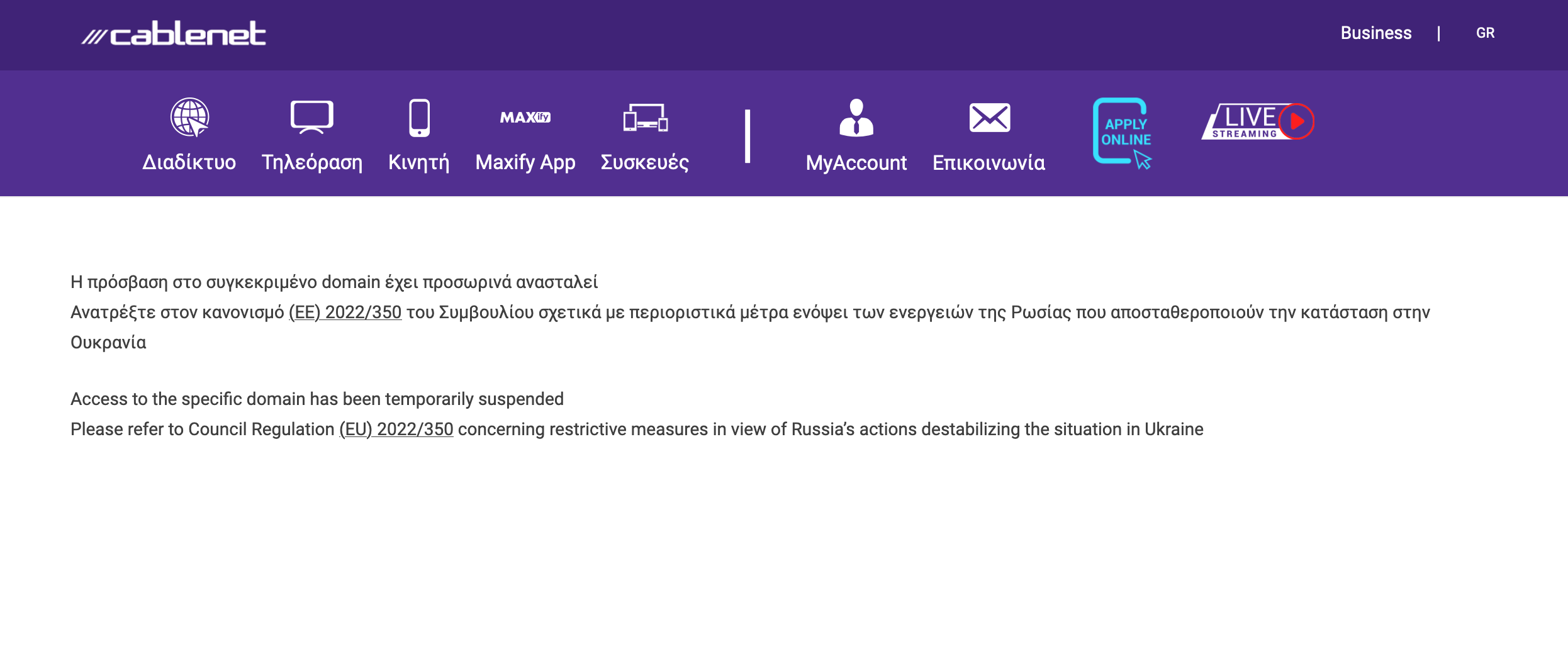 While the term “broadcasting” suggests that the sanctions focus on television, they also require ISPs in member states to block access to websites associated with the sanctioned entities. In the Netherlands, the implementation of the sanctions triggered a coalition of Dutch ISPs and freedom-of-speech advocacy groups to file a complaint with the European courts. Specifically, they stated “that the Council of Ministers of the European Union has taken the far-reaching decision to censor these channels without taking sufficient account of the freedom of information…" (see the official press release).