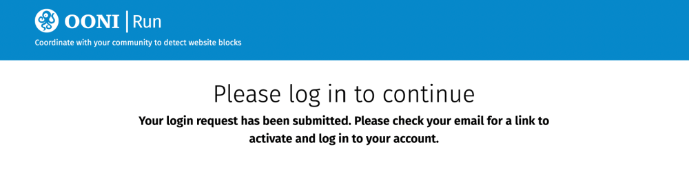 Step 4. Click the link (“Please login here”) sent to your email to log into the OONI Run v2 platform.