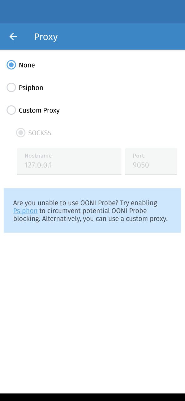 With these low-level details out of the way, my colleague Lorenzo and I started working on the user interface for configuring a proxy on Android (ooni/probe-android#423). A few Android users also assisted us, providing feedback, testing, and code patches.